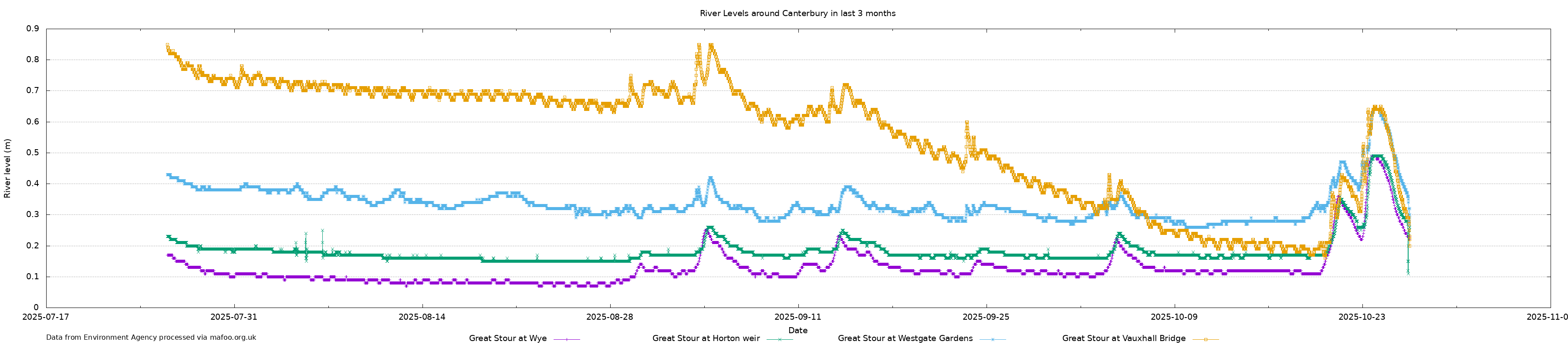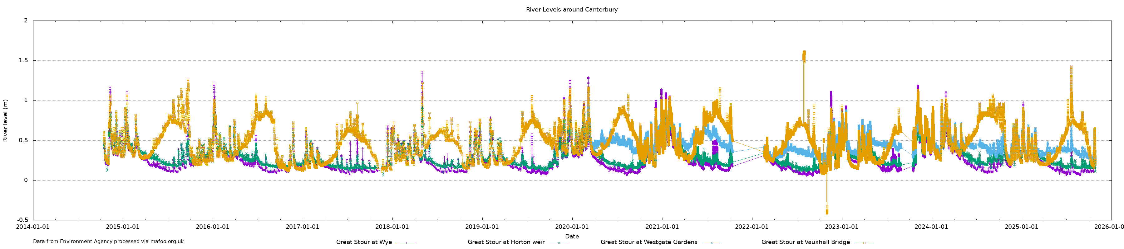 Stacked river levels for the Great Stour around Canterbury, Kent
